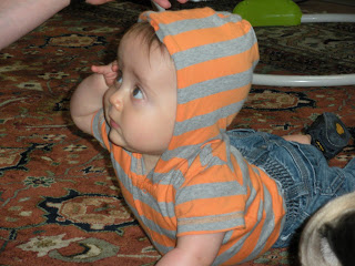 The biggest thing to happen in the past two weeks was that Oliver finally learned to crawl!!! Just shy of being 9-1/2 months old, on Saturday July 11th, Oliver took his first real crawling strides on his knees!!! We were so excited to be able to capture it on film (or digital file for all you semantic sticklers). Oliver has been teasing us for a while with crawling attempts and frustrated angst but he finally bit the bullet and got off his belly and took his first strides towards being a super evolved homo sapien.